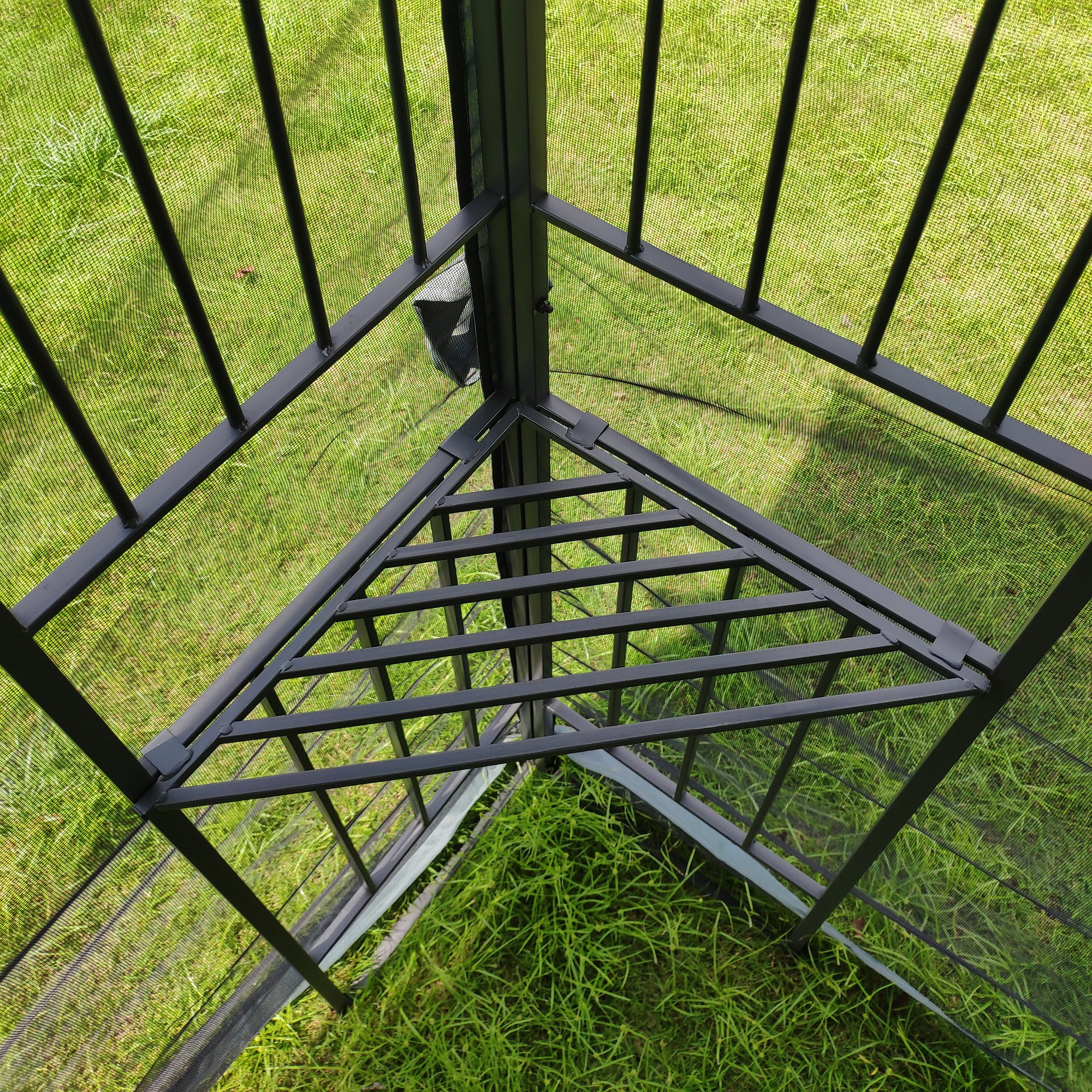 Large Space Canopy: This 10x10 gazebo provides enough shade for you and your family's daily leisure activities.You can place a dining table or a set of sofas inside the gazebo; which can accommodate 5-6 people for outdoor entertainment for you and your friends. High Quality Structure: The frame is made of powder-coated steel; which is sturdy and anti-rust.All four legs are triangular frames made of iron pipes to provide stable support and allow for the placement of small objects. High Quality Fabric: The gazebo Top cloth made of high quality polyester cloth; waterproof and sunscreen; strong and durable. Double-Tiered Top: The double-layer gazebo canopy roof design can increase stability; prevent severe water accumulation and maintain ventilation. Removable Mesh: The gazebo is equipped with four-sided mesh; which prevents outdoor insects from entering the tent and keeps the air flowing.You can also remove the mesh when you don't need it. Versatile Use: It is suitable for lawns; gardens; backyards; decks; and also for outdoor activities such as parties.