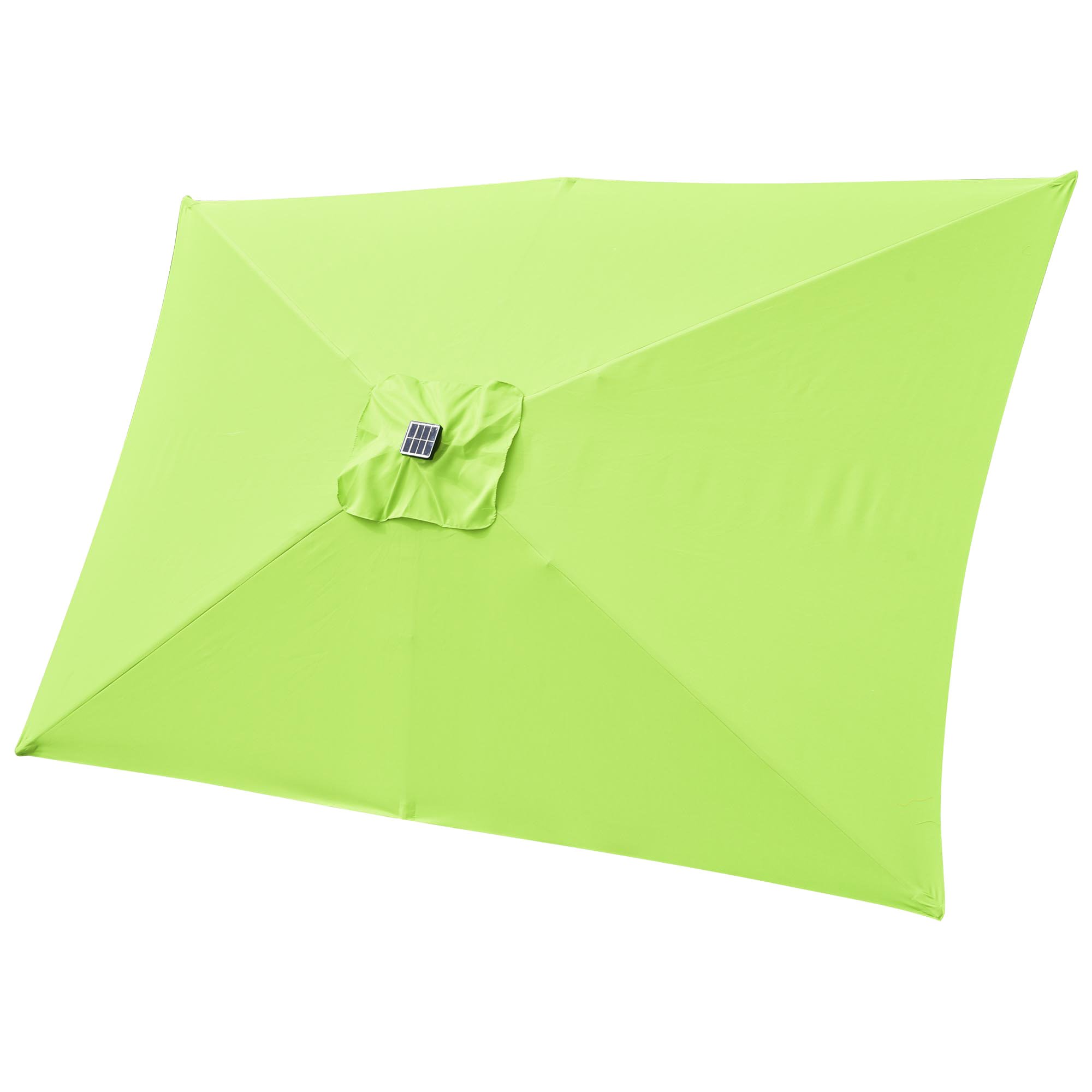 - Energy-saving Solar LED Umbrella - 10x6ft Patio Umbrella features LED lights; powered by upgraded 1.6W solar panel to offer brighter illumination; charging during daytime and lighting at dusk or night; great for setting mood; turn on lights to make your own starry sky