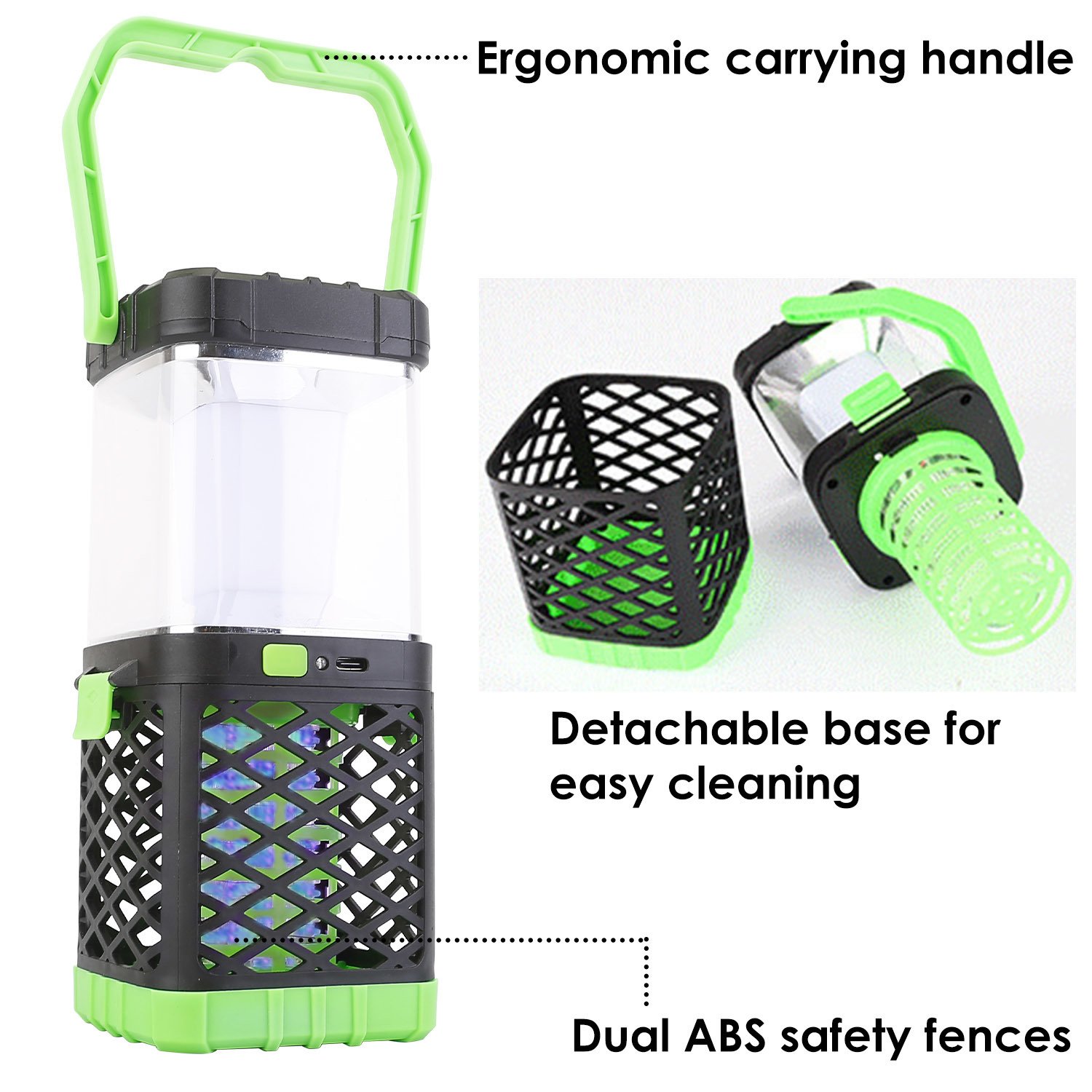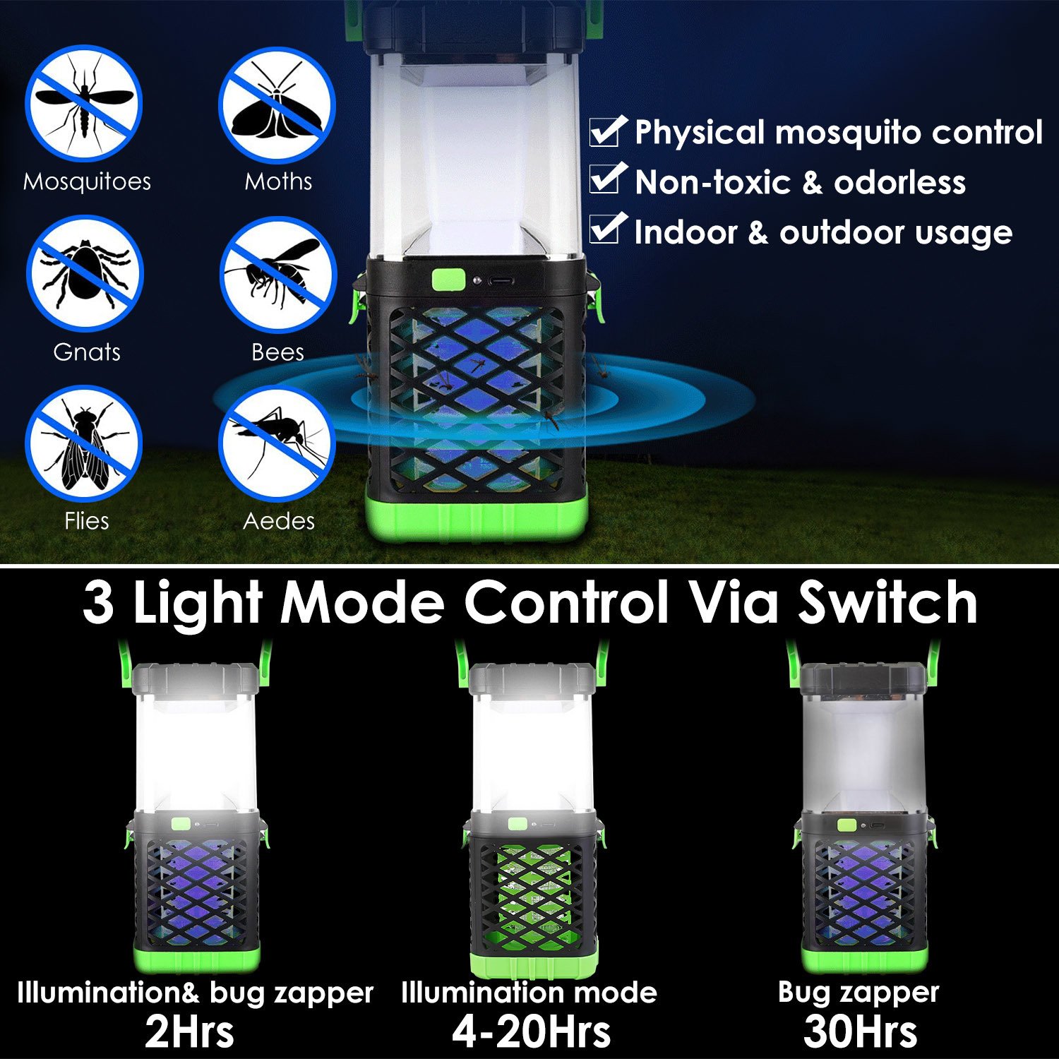 *2 IN 1 Bug Zapper Lamp*:Not only a bug zapper but also a lamp for you. Mosquitoes or other nocturnal insects will be attracted by ultraviolet light and then be zapped the moment they touch the high voltage metal grids. The super bright light at the top part serves as a reading lamp for camping and other outdoor activities. The lamp mode and mosquito control light are controlled by the switch separately; making it much easier for you to operate.