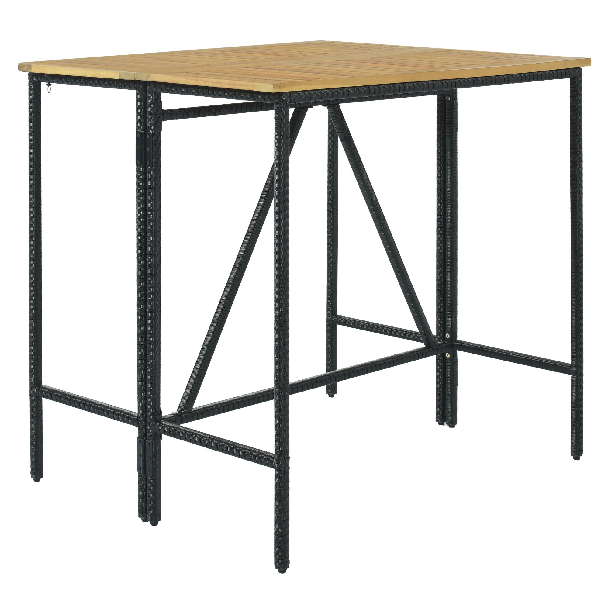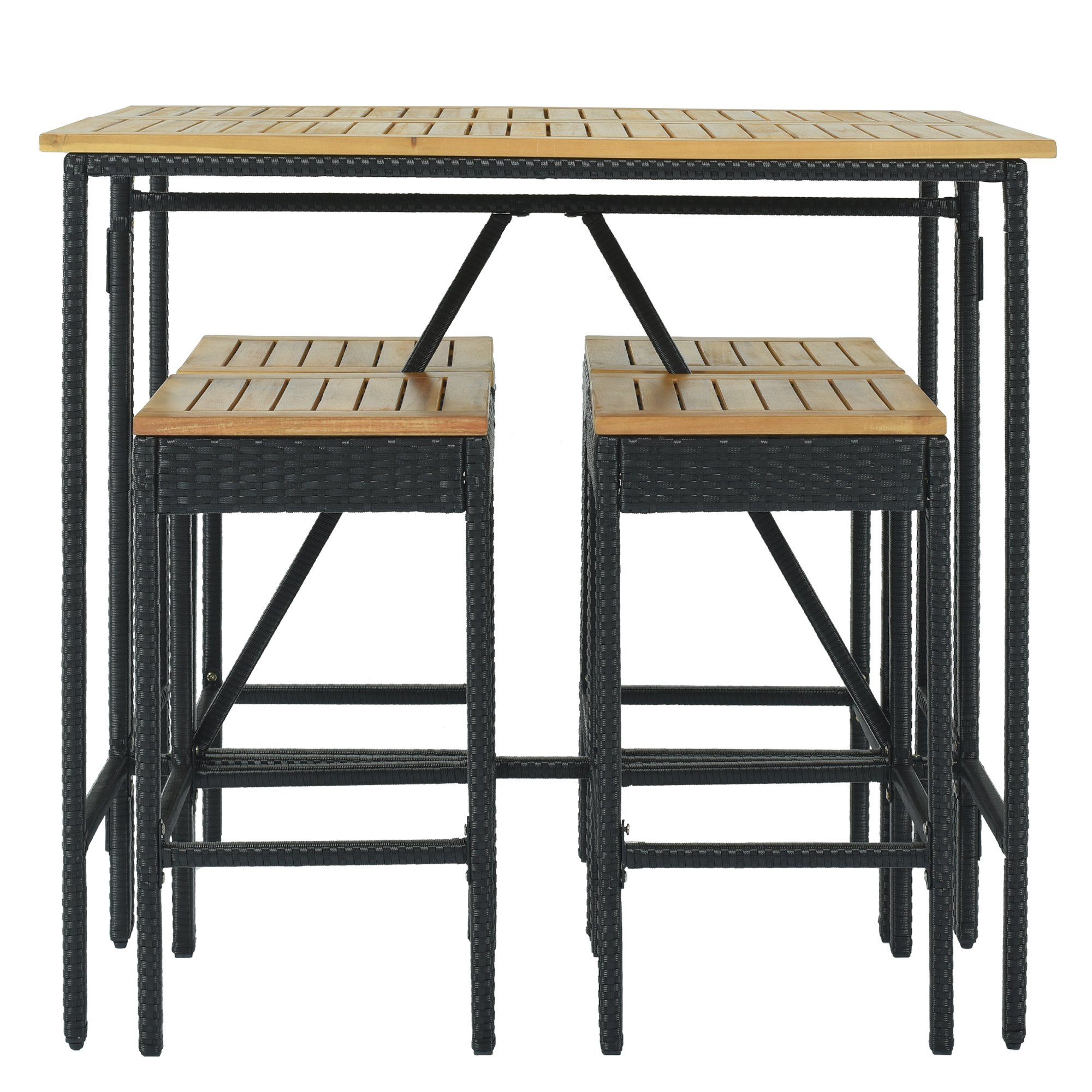 Home > 5-Piece Outdoor Patio Wicker Bar Set; Garden PE Rattan Wicker Dining Table; Square Stool Set; Foldable Tabletop; Acacia Wood Tabletop; High-Dinin