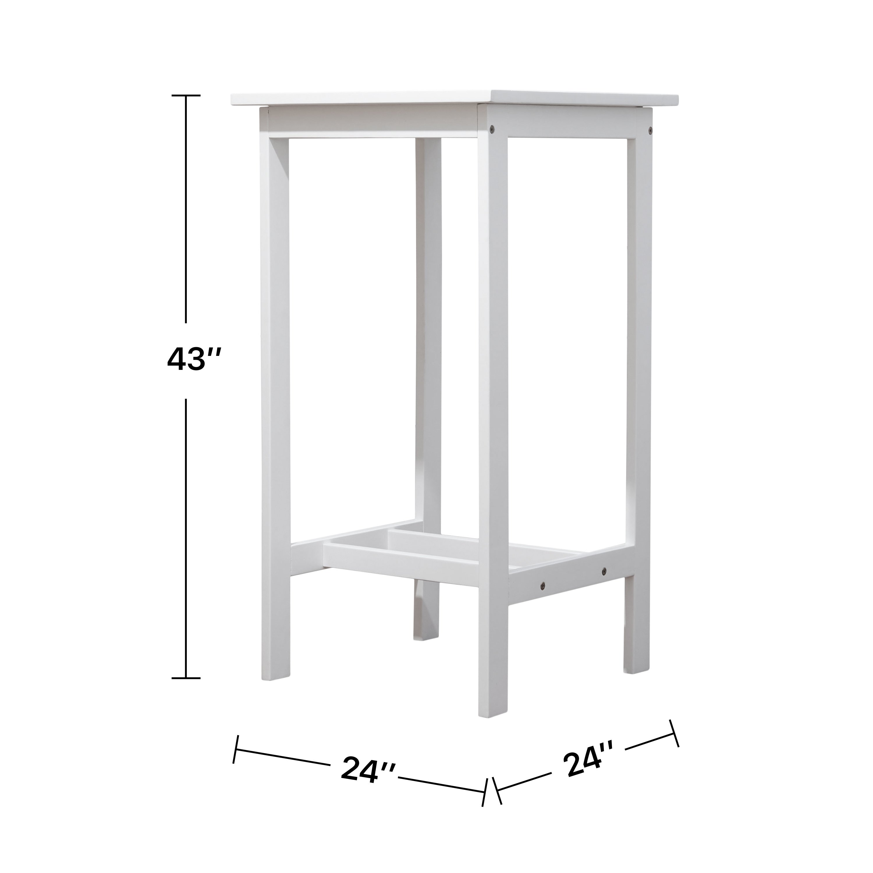 - Slatted design; square top; high straight legs; with footrest- Fast and easy to assemble- Made from Acacia Hardwood; White Painted Finish- Protective qualities: Weather-resistance; UV-radiation- Product dimensions: 24 L x 24 W x 43 H (inches)- Weight Capacity: 150 lbs