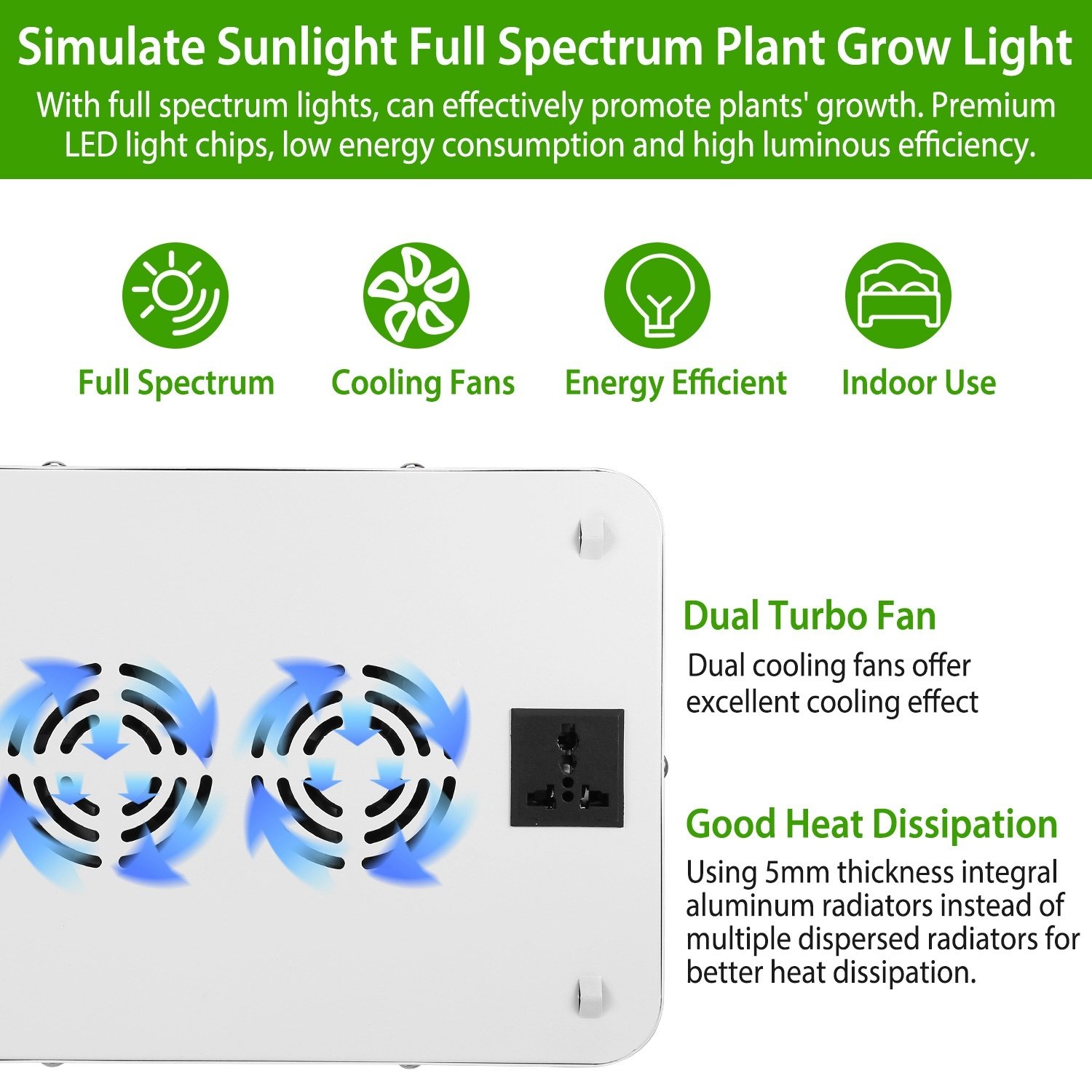 **Simulate Sunlight Full Spectrum Plant Grow Light*:iMounTEK Upgraded full-spectrum LED Grow Light simulates the solar spectrum and it contains all necessary lights(380nm-800nm) that plants need for optimum growth. Ideal for indoor plants veg and flower at all growth stages.