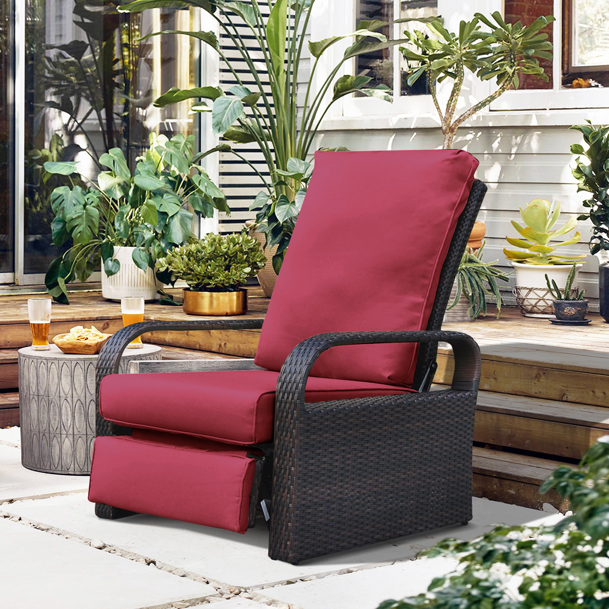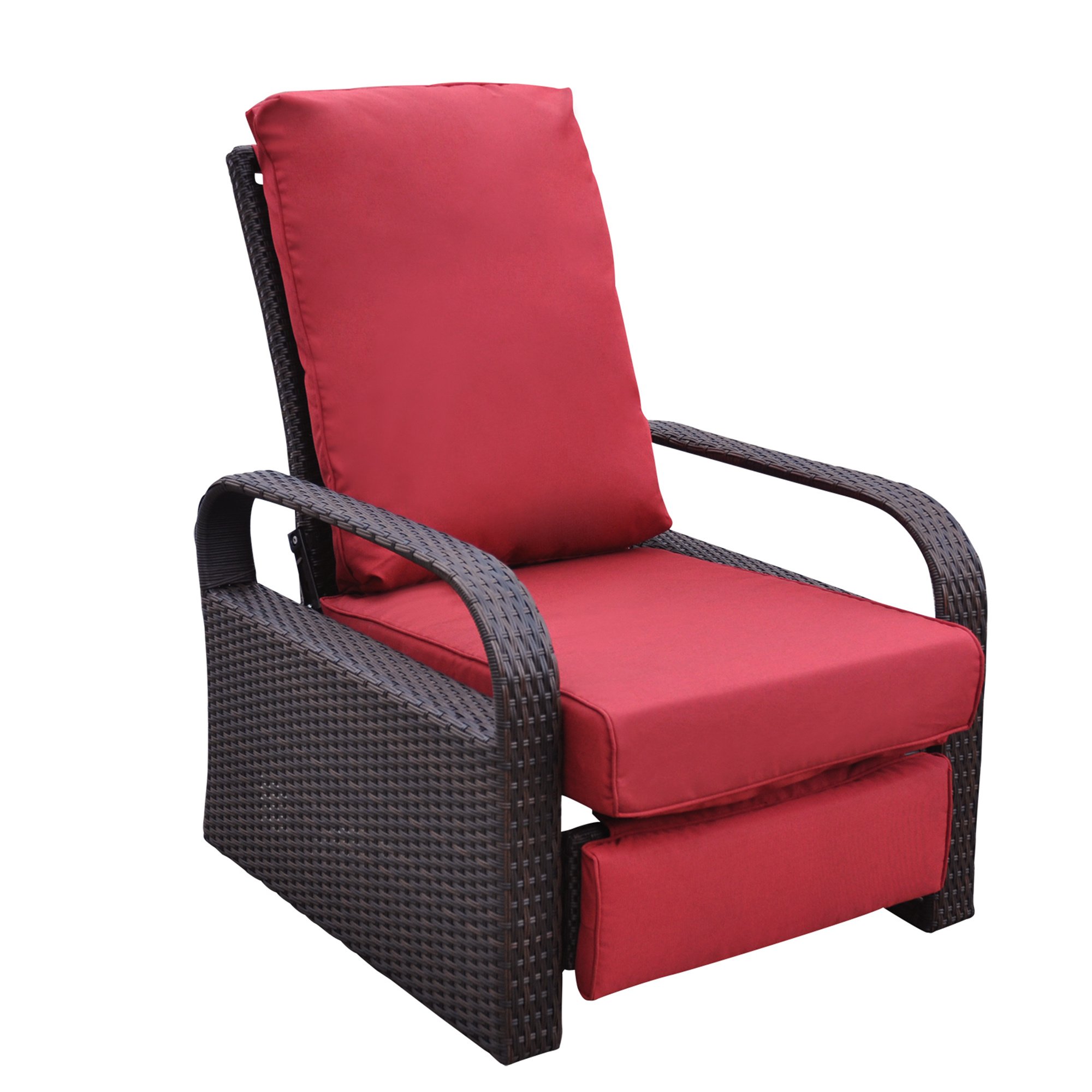 Outdoor Recliner Chair;  Automatic Adjustable Wicker Lounge Recliner Chair with 5.12'' Thicken Cushion - Red - Brown Wicker Outdoor Recliner Chair;  Automatic Adjustable Wicker Lounge Recliner Chair with 5.12'' Thicken Cushion - Red - Brown Wicker Outdoor Recliner Chair;  Automatic Adjustable Wicker Lounge Recliner Chair with 5.12'' Thicken Cushion - Red - Brown Wicker Outdoor Recliner Chair;  Automatic Adjustable Wicker Lounge Recliner Chair with 5.12'' Thicken Cushion - Red - Brown Wicker Outdoor Recliner Chair;  Automatic Adjustable Wicker Lounge Recliner Chair with 5.12'' Thicken Cushion - Red - Brown Wicker