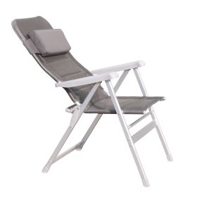 Aluminum Alloy Lounge Chair Adjustable Recliner w/Pillow Outdoor Camp Chair for Poolside Backyard Beach, Support 300lbs, Grey