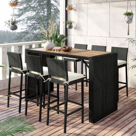 3 Pieces Patio Rattan Furniture Set with Acacia Wood Tabletop - as show